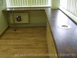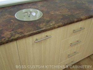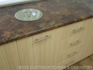 Summer Oak finish with Tan Slate Formica counter tops and Natural Oak laminate flooring.